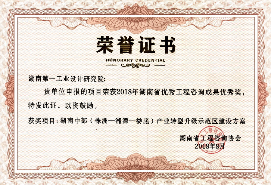 湖南省優(yōu)秀設(shè)計(jì)表?yè)P(yáng)金獎(jiǎng)(1984)